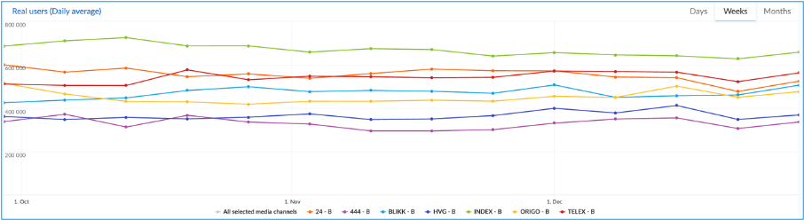 [1] Fontos leszögezni, hogy a piaci kép csak akkor teljes – ezért is járunk el így minden elemzésünkben – ha valamennyi olvasási lehetőséget egyben elemezzük. Mivel erre a hivatalos közönségmérés (DKT) lehetőséget ad, ezért is minden médiatermék esetében a teljes márkát elemezzük, tehát a webes, mobilos és applikáción keresztül is olvasókat, hiszen ők mindannyian ugyanazt a terméket, hírmixet érik el.
