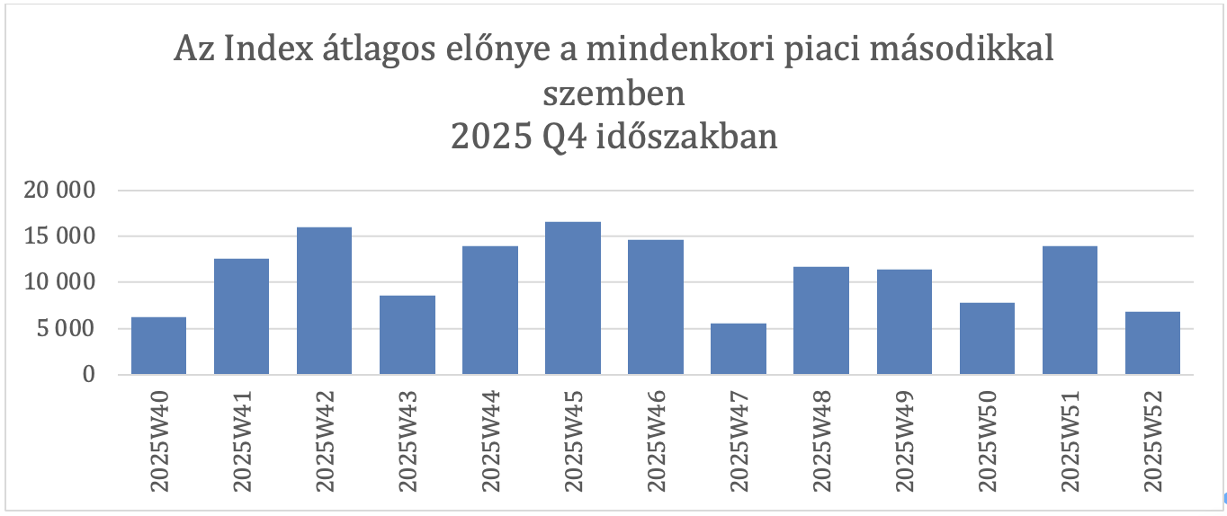 Összességében megállapítható, hogy 2025 utolsó negyedévében valamennyi kulcsmutatóban az Index volt a magyar hírpiac vezető médiuma – bármit is állítson egy-egy versenytárs egyes részterületek elemzésekor.