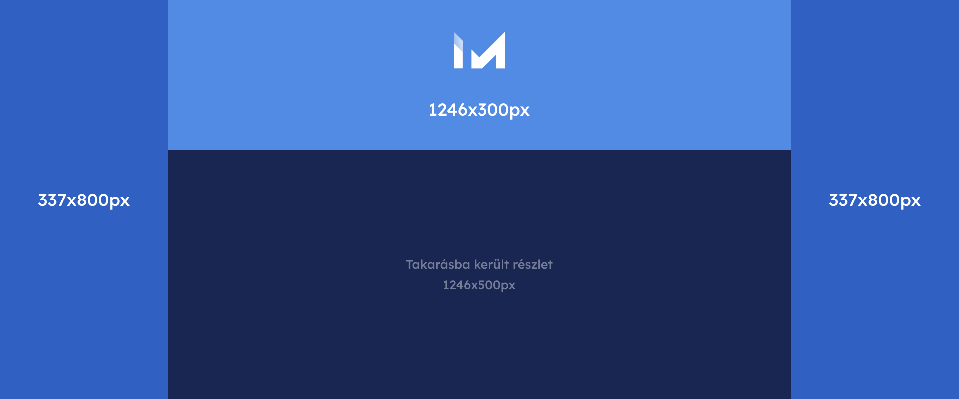 1920x800px méretű kép. A kép felső, 300px magas része a cikkek fölött fixen jelenik meg, ide érdemes a kommunikációt tervezni. Az oldal reszponzivitása miatt, a képernyőszélességtől és felbontástól függően a kép középső ≥1200px, része takarásba kerül (a 300px alatti rész), a képet ennek figyelembe vételével kell megtervezni, hogy minden képernyő szélességen megfelelően jelenjen meg. 1920x1080px felbontáson az oldal jobb és bal oldalán egyaránt 337-337px áll rendelkezésre.